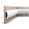Przygotowany przez firmę Orac model P3070 ma niecodzienny wygląd. Prosty łuk wykonany z idealnie białego tworzywa i perfekcyjnie przylegający do ściany może być szczytem wyrafinowania. Jego kształt przypomina nieco odbojnik i jest to poprawne skojarzenie. Listwa ta świetnie nadaje się do tego, aby montować ją nad podłogą, gdzie będzie chronić ściany przed kopnięciami czy uderzeniami.